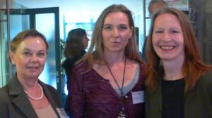 Dörte v. Kittlitz (Selbsthilfebüro Niedersachsen) überreichte eine Urkunde an die Geschäftsführende Vorsitzende Christina Ziethen und die Koordinatorin des Bereichs KIBIS Michaela Kaplaneck.
