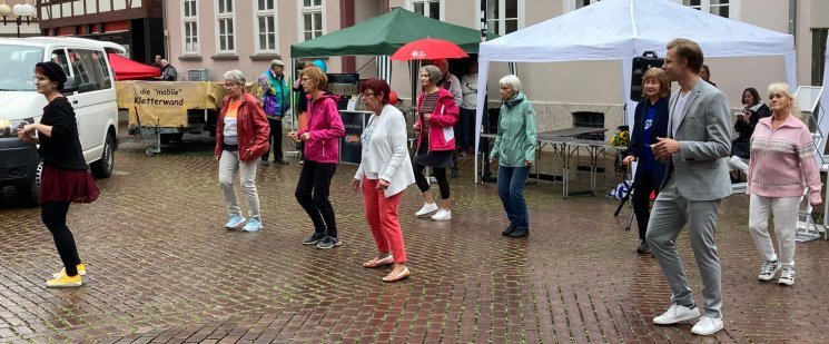 Es gab interessante Aktionen zum Mitmachen: Tabata- und Fitness-Traning, Erklimmen der Kletterwand und den Agilando-Tanzkurs. Das Wetter spielte trotz düsterer Prognosen bis um 15.00 Uhr mit. Trotz des Regens ließen sich die Senioren der Tanzschule Krebs ihren Auftritt um 15.30 Uhr nicht nehmen. Chapeau!!!