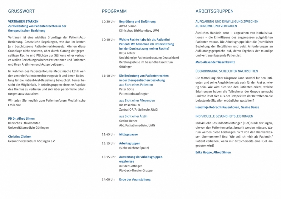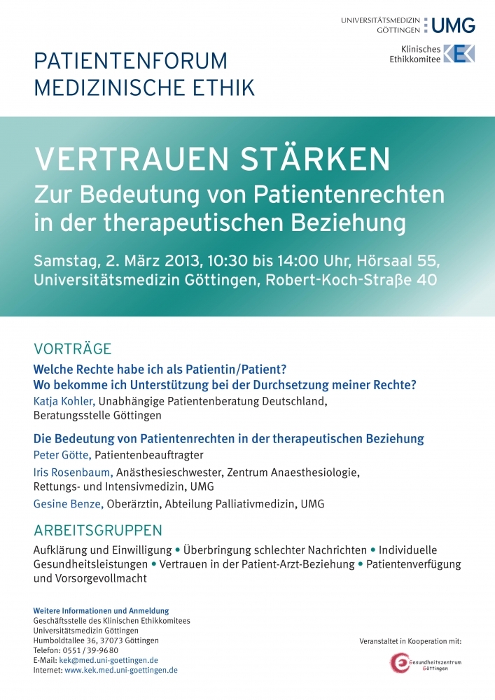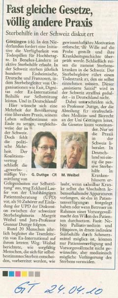 Die Unabhängige Patientenberatung Deutschland (UPD), Beratungsstelle Göttingen organisierte am 20.4.2010 eine Podiumsdiskussion über ein Tabuthema in Deutschland. Es diskutierten: Dr. jur. Margrit Weibel (EX International, Bern/Schweiz) und Prof. Dr. Gunnar Duttge (Zentrum für Medizinrecht, Universität Göttingen). Die Moderation übernahm Jürgen Gückel (Göttinger Tageblatt).