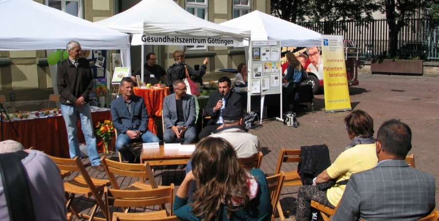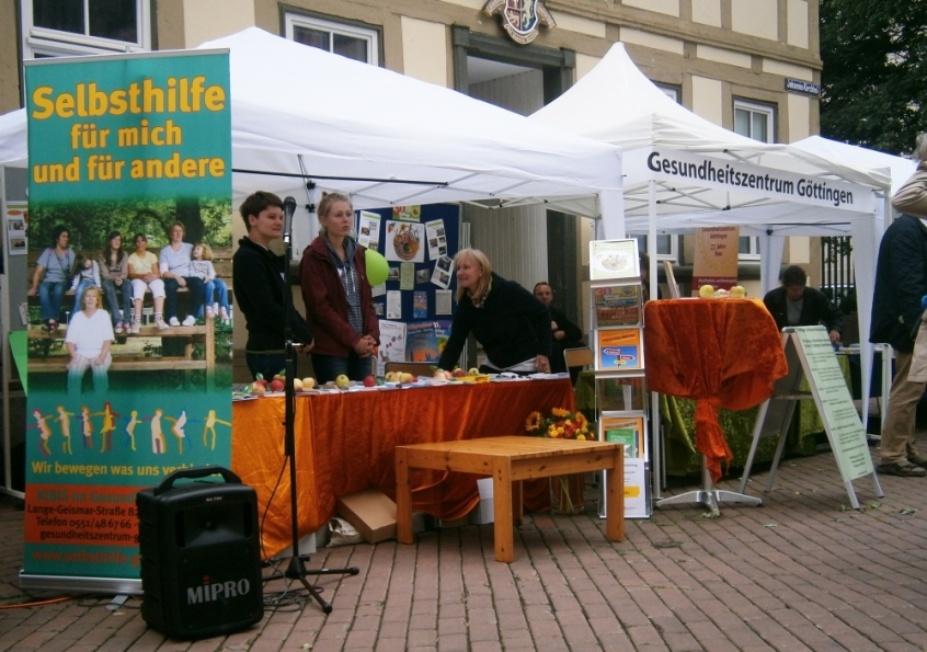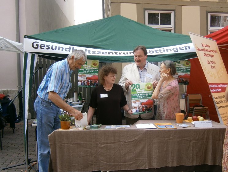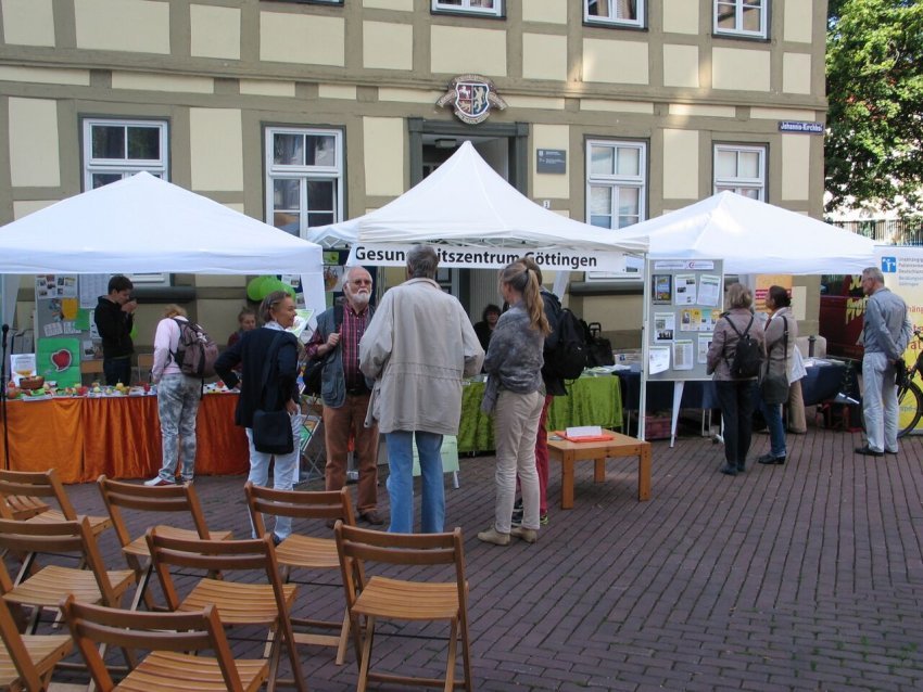 Der Göttinger Gesundheitsmarkt bot Informationen aus den Bereichen Heilung, Prävention, Selbsthilfe, alternative Heilmethoden, Patientenberatung, Gesundheitsforschung, Ernährung und gesundes Leben. Bei einer Podiumsdiskussion über primäre und sekundäre Prävention mit den Experten Dr. Schumacher, Prof. Edelmann und Prof. Raddatz konnten Fragen zum Thema gestellt werden. Die Neue Göttinger Gruppe mit K. Pawlowski und P. Umbach begeisterte durch satirische Texte rund um Gesundheit, eingerahmt durch Lieder von und mit Oliver König. Für Bewegung und neue Energie sorgten Mitmachaktionen wie Tai Chi etc.
