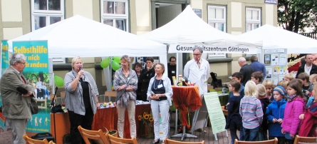 Der Göttinger Gesundheitsmarkt bot Informationen aus den Bereichen Heilung, Prävention, Selbsthilfe, alternative Heilmethoden, Patientenberatung, Gesundheitsforschung, Ernährung und gesundes Leben. Bei einer Podiumsdiskussion über primäre und sekundäre Prävention mit den Experten Dr. Schumacher, Prof. Edelmann und Prof. Raddatz konnten Fragen zum Thema gestellt werden. Die Neue Göttinger Gruppe mit K. Pawlowski und P. Umbach begeisterte durch satirische Texte rund um Gesundheit, eingerahmt durch Lieder von und mit Oliver König. Für Bewegung und neue Energie sorgten Mitmachaktionen wie Tai Chi etc.