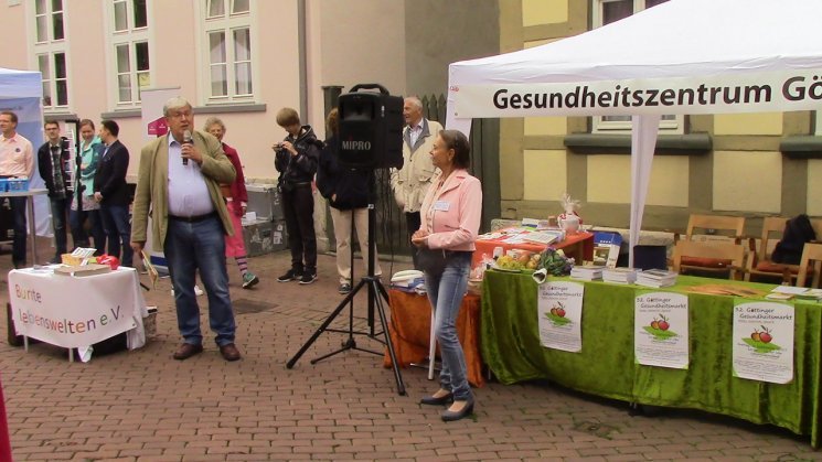 Der 32. Gesundheitsmarkt wurde durch Christina Ziethen (Vorstand Gesundheitszentrum Göttingen) und Klaus-Peter Hermann (Ratsherr der Stadt Göttingen) eröffnet.